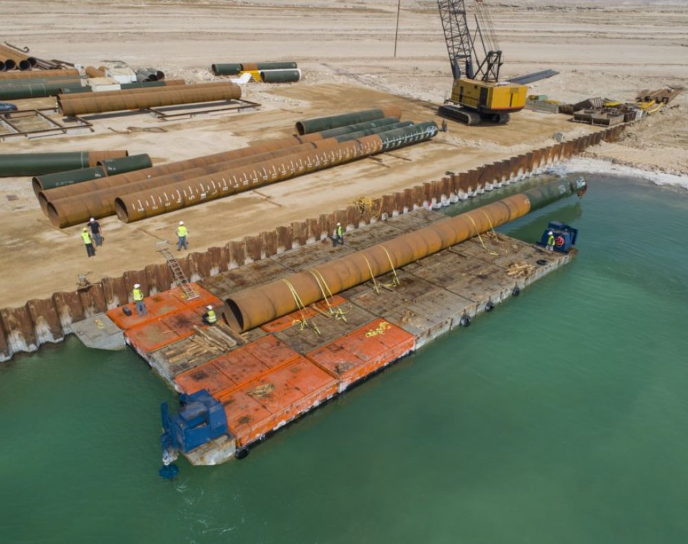 הקמת מזח למתקן משאבות טורבינה, גשר גישה, קווי סניקה מצנרת פלדה בקוטר 3 מ' עובי דופן 25 מ"מ, דרכי שירות, אלמנטי פלדה להתחברות לקו מהקטע הימי הסמוך, מיכשור (מדים ומגופים), עבודות מסגרות חרש.