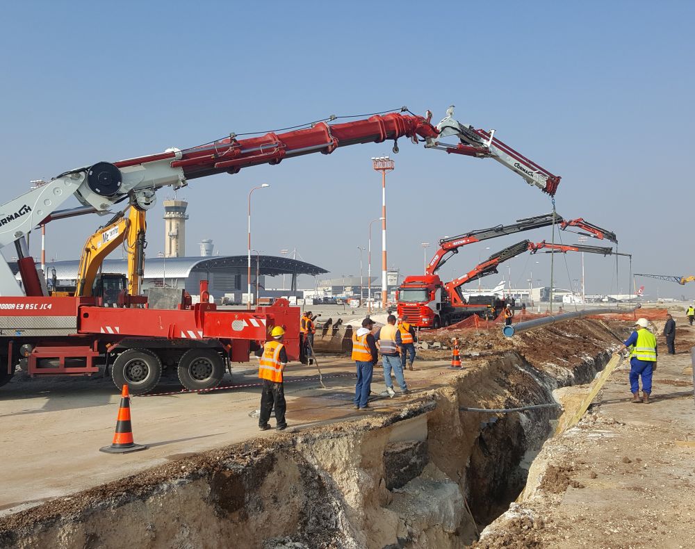 עבודות הכנה, פירוק וחישוף שטחים (100,000 מ"ר), עבודות עפר: חפירה בשטח, הידוק מבוקר ומילוי מצעים (100,000 מ"ק), עבודות אספלט (100,000 מ"ר), הנחת צנרת דלק תת-קרקעית למטוסים, ביצוע רצפות בטון, עבודות ניקוז: תאי ניקוז, שוחות בקרה וקווי מים, התקנת תאורת מסלולים, תשתית חשמל ותקשורת, צביעת מסלולים