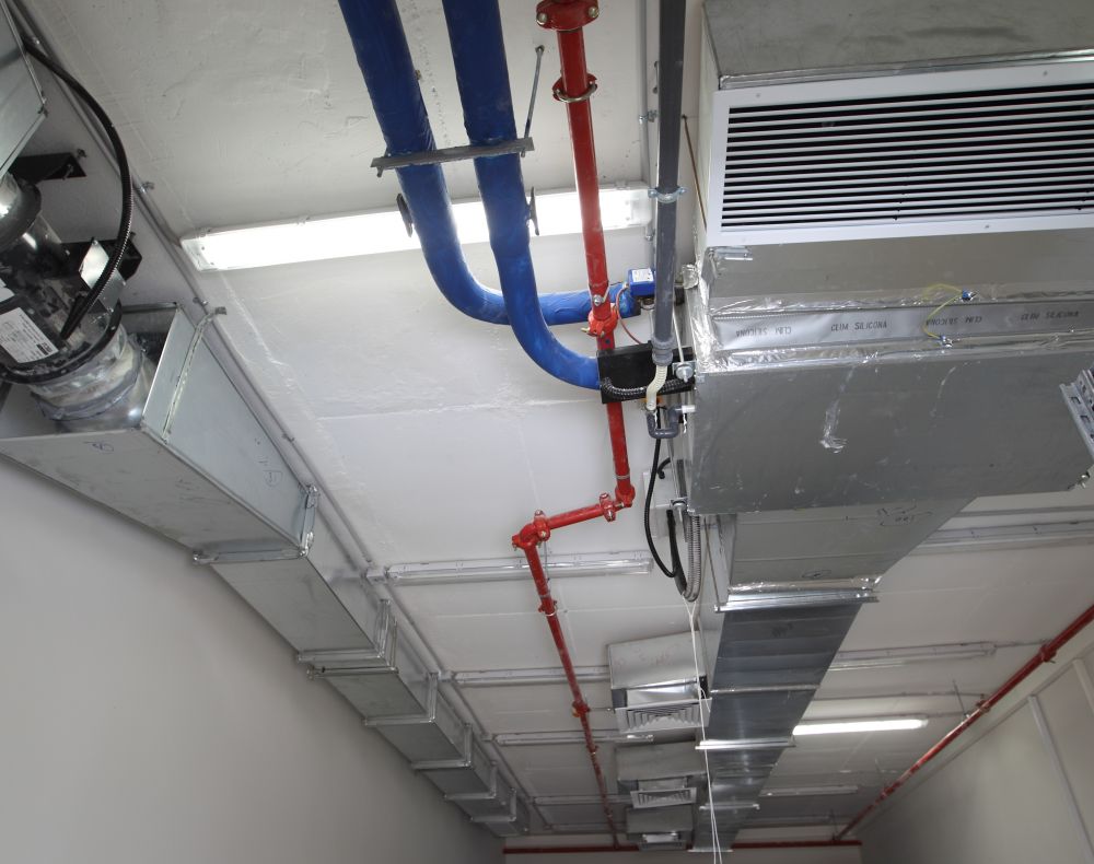 Installation of air conditioning, electricity, plumbing and communications infrastructure. Laying of underground infrastructure for sewage, drainage, electricity, communications, water and external lighting systems.